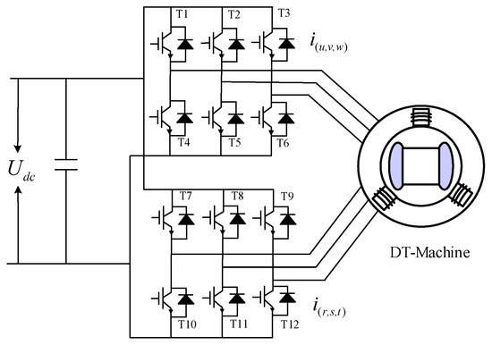 Topology of dual three-phase motor voltage source-type inverter.