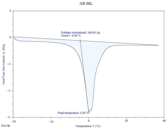 Figure 5 illustrates the freezing characteristics of the Ice Gel material, with a freezing point of 0.29 °C and an enthalpy value of 340.64 J/g. Meanwhile,