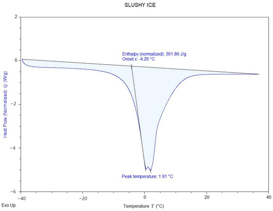 Figure 6 displays the freezing properties of the Slushy Ice, which exhibits a freezing point of 1.91 °C and an enthalpy value of 361.66 J/g. Comparing the two materials, the Slushy Ice demonstrates superior thermal performance. Long-term cycling tests (500 cycles) further confirmed its durability, showing only 8.2% latent heat decay (vs. 15–20% in other organic PCMs). Consequently, the Slushy Ice solution was selected as the filling material in the experiment. This choice not only optimizes the system’s thermal performance but also ensures higher energy storage efficiency.