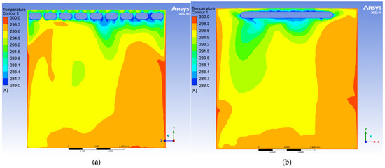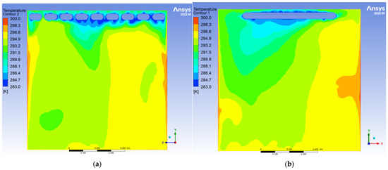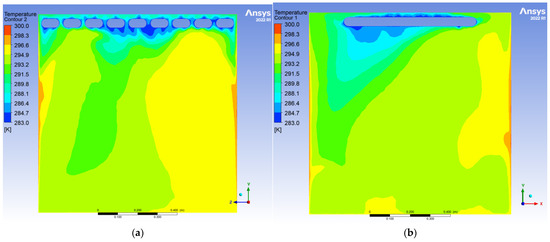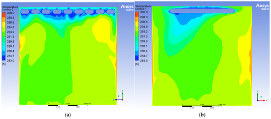To evaluate the dynamic thermal regulation efficacy of the radiative cooling ceiling, this study employs a three-dimensional transient thermal model to document temperature field evolution from 0.5 to 10 h of operation on ZY and YX orthogonal observation cross-sections (labeled as Plane 1 and Plane 2, shown in
