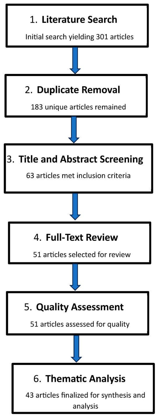 - Title and Abstract Screening: A preliminary review identified 63 articles meeting the inclusion criteria.