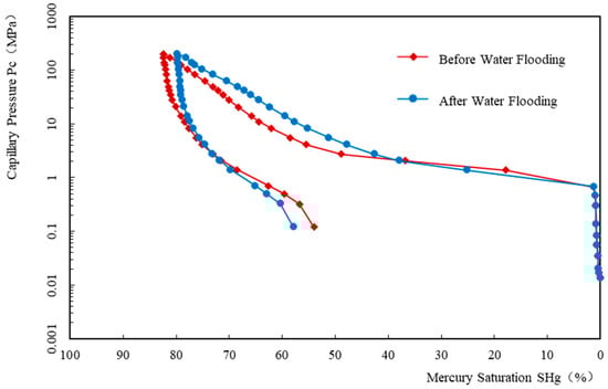 Comparison of Mercury Intrusion Curves Before and After Waterflooding.