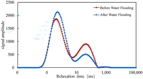 NMR T2 spectra before and after waterflooding.