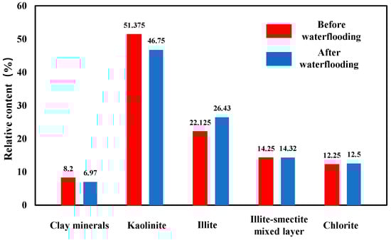 Comparison of Relative Clay Mineral Content Before and After Waterflood-Induced Damage.