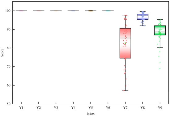 The index score calculation method of the KPI for monitoring the reliability and sustainability of service delivery is shown in Equation (8):
