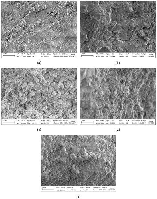 Morphological observations were made using a ZEISS EVO LS-15 scanning electron microscope manufactured by Carl Zeiss Microscopy GmbH in Oberkochen, Germany. (SEM). Samples were sent to the Laboratório de Imagens de Materiais (LAIMAT) at the Materials department (FEG/UNESP) in Guaratinguetá—SP for SEM analyses. Morphological analyses were conducted, to assess the impact of the process on the surface integrity of the samples.