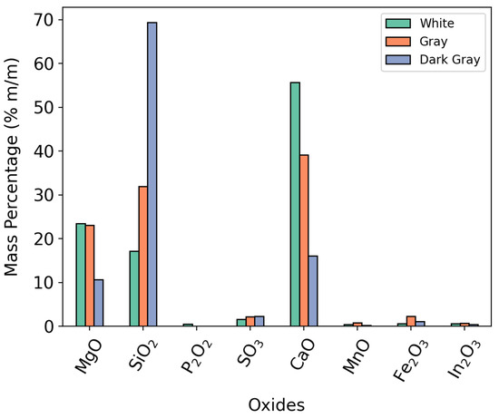 XRF analysis was performed, to determine the chemical composition of the dolomite. Samples were sent to Central de Análises Químicas Instrumentais—CAQI at Chemistry Institute (EESC/USP) in São Carlos—SP for XRF analyses. The CAQI lab personnel conducted tests using their own protocol, and their XRF equipment was a PANalytical—Model: MiniPaI4, Malvern Panalytical B.V., Almelo, Netherlands. Table 1 shows the initial composition of the samples used in this work: