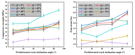 5.1. Effect of Pre-Existing Fracture Angles on Compressive Strength and Failure Modes
