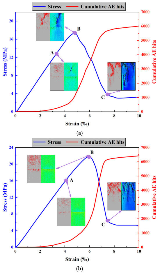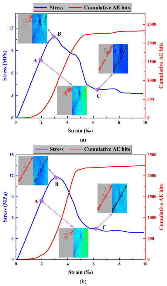 - The AE activity is closely linked to the transition from gradual microcrack development to the rapid coalescence that characterizes macro-fracture. Sudden surges in AE events were observed to coincide with critical load levels, signaling a rapid release of strain energy and imminent structural failure. These AE patterns serve as a sensitive indicator of the evolving damage process and validate the notion that the interplay between fissure orientation and bedding plane dip not only governs the static strength but also the dynamic fracture propagation behavior.