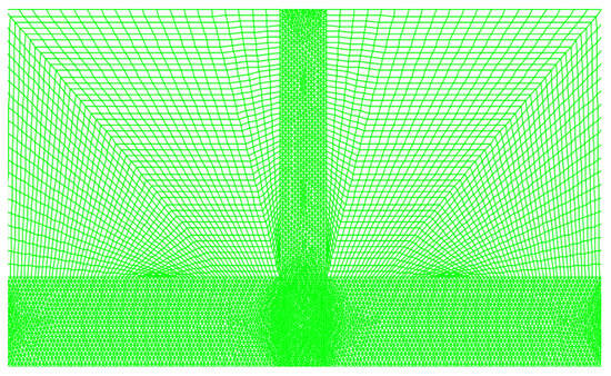 The schematic representation of the model for boundary conditions follows the layout shown in Figure 3. Based on this figure, the spray surface and environment are modeled using Gambit software (15.1.0) via the geometry section. The mesh generation process is carried out using the Mesh Edge and Mesh Face menus. Triangular meshes are created through the Map Split function. After defining the required geometry, the Mesh Edge menu is used to specify the number of nodes along each edge. Adjusting the number of nodes on each boundary allows for refinement or modification of the mesh elements. Finally, in the Zone menu, the Specify Boundary Type window is used to assign boundary conditions, where the surface is set as a wall boundary condition. Within the designated continuum type window, the interior domain is defined as Fluid. The completed mesh is subsequently exported in Mesh format, as illustrated in Figure 4. A summary of the thermophysical properties used in the CFD simulation 2023 is provided in Table 1.