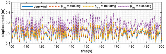 Figure 16 illustrates the probability density function (PDF) of displacement at the top of the power transmission tower, calculated using the probability density evolution method (PDEM).