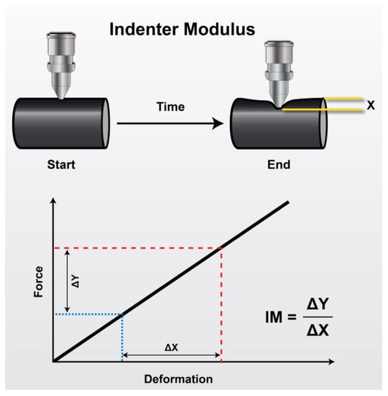 18]. The compressive modulus is a key mechanical property of insulation and jacket materials, used to monitor aging in materials that exhibit progressive changes in mechanical properties over time. As insulation hardens with age, the indenter modulus correspondingly increases. The indentation technique is a quantitative non-destructive cable condition monitoring technique that consists of driving a probe tip into the surface of the cable jacket or cable insulation material. During the indentation and post-indentation phases, the load and displacement are measured and combined to derive parameters related to the rheological properties of the material. The advantages of this technique are as follows: