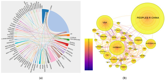 This study collected a total of 1764 publications related to geothermal energy and HDR for bibliometric analysis. China is the leading country in this field, with 704 publications (accounting for 39.9% of the total), followed by the United States (292 publications, 16.5%), Germany (224 publications, 12.7%), Australia (97 publications, 5.5%), and Canada (94 publications, 5.3%). As some publications can be attributed to multiple countries, the total percentage exceeds 100%. The number of publications reflects the research activity level in each country within this field. Overall, HDR research receives more attention in developed countries, while developing countries are increasingly investing in this area. China, the United States, and Germany have high numbers of both single-country publications and international collaboration papers, highlighting their research influence in this field. Figure 4b shows the network diagram of cooperation between countries, clearly indicating close collaboration among the major countries, particularly the top three.