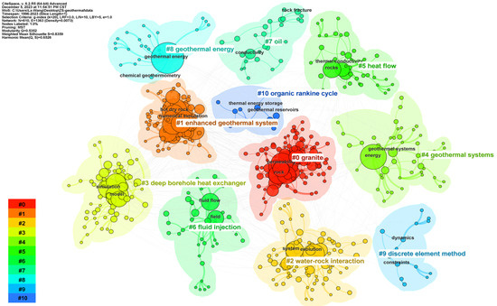 China is a major participant in the field of HDR geothermal energy research, with the largest node, indicating its absolute leadership in terms of publication volume. China’s lead in publications (39.9%) aligns with its 2017 National Geothermal Energy Development Plan, which allocated $2.3 billion to HDR projects [33]. China’s research primarily focuses on HDR resource assessment, development technologies, and practical applications. In recent years, China has significantly increased its research investment and output in this field, becoming a central force in global HDR research. However, despite its large volume of publications, China’s international collaboration network appears relatively loose, with more research likely concentrated on domestic collaborations. The United States is another key center for global HDR geothermal energy research, with a node size second only to China. The U.S. has a long history of research in this area, particularly leading in EGS technology. The U.S. has close collaborative relationships with other countries, with numerous and thick connections, indicating its pivotal role in global academic cooperation. The U.S. collaborates especially closely with countries such as Germany, Australia, and France, contributing significantly to the advancement of global HDR technology. Germany also holds a prominent position in the field, highlighting its important role in HDR geothermal energy research. Germany has achieved significant results in both technological development and application and has driven global research progress through extensive international collaborations. Germany’s partnerships with European countries (such as France, Italy, and Switzerland) and the United States are particularly strong, reflecting its central role in promoting geothermal research across Europe. Although Japan and Switzerland have fewer publications, they still occupy important positions in the network. These countries have a strong foundation in technological innovation and scientific research, and through collaborations with the U.S., Germany, and others, they continue to push the frontiers of HDR research. Japan focuses on geothermal power generation and resource assessment, while Switzerland has made significant contributions to the study of EGS. France and Italy also hold notable positions in the network, reflecting their important roles in European geothermal energy research. France’s Soultz-sous-Forêts project is one of the earliest EGS demonstration projects globally, providing valuable experience for HDR research worldwide. Italy has conducted in-depth research on both traditional geothermal resource utilization and the development of new technologies, maintaining close collaborative relationships with other European countries.