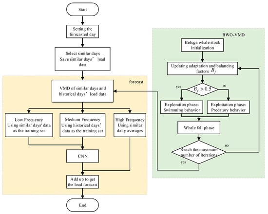 By integrating the aforementioned processes, the workflow of the short-term load forecasting model based on the similar-day theory and VMD is obtained, as illustrated in Figure 4.