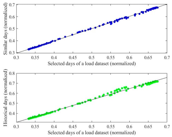 As can be seen in Table 4, the correlation of 0.9189 for similar days is greater than 0.9104 for historical days.