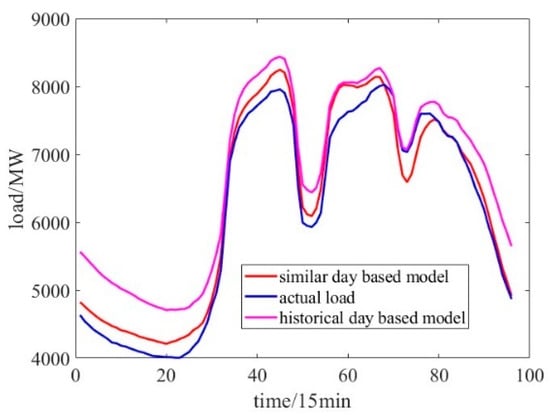 Load data from 1 January 2014 to 31 December 2014 is taken to verify the superiority of similar day selection. The average results are shown in Figure 10 and Table 4.