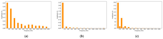 The experiments presented in Section 5.2 are conducted using the PLAID dataset as a case study. By performing frequency domain analysis on the steady-state current of appliances using FFT [41], the amplitudes of various current harmonics are obtained. Taking compact fluorescent lamps, hairdryers, and microwaves as examples in Figure 6, the amplitudes of even-order harmonics are significantly lower than those of odd-order harmonics, and the amplitudes of harmonics above the eleventh order are relatively low. Therefore, only the first, third, fifth, seventh, ninth, and eleventh harmonic features are selected. Combined with the previously mentioned power-related and current-related features, a total of 20 one-dimensional numerical features are extracted.