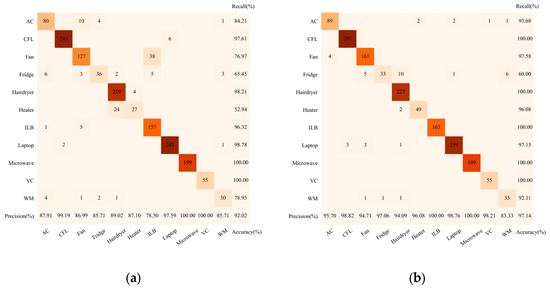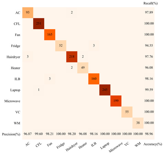 In this paper, the accuracy rate, precision rate, recall rate, F-score [39], and visual confusion matrix [40] are used to evaluate the load identification results. The calculation formulas are as follows: