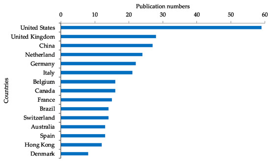 The top 15 countries with the highest contributions to the publications related to building energy and sensitivity analysis, based on data from the Scopus database.