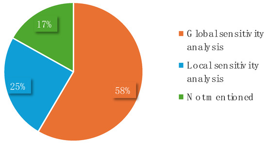 Percentage of local and global sensitivity analysis methods adopted in the review studies.