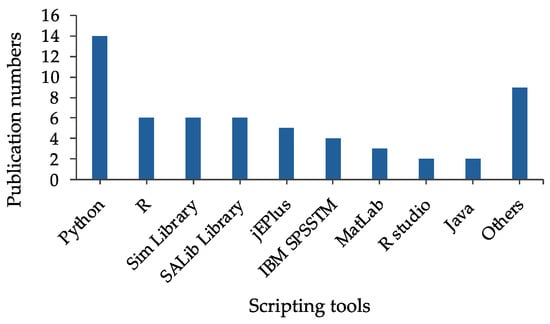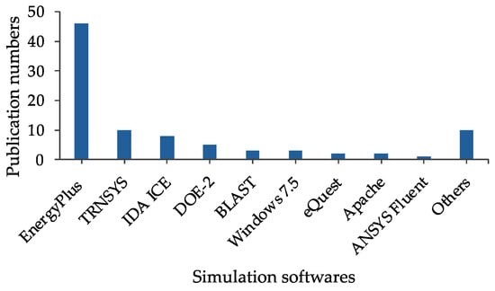 Simulation tools are crucial components of SA nowadays because they allow complex systems to be solved. The interaction of multiple input parameters and nonlinear relationships often made the analytical solutions impractical or impossible. In addition, manual calculation can be very time-consuming and computationally exhaustive. Using standardized simulation software ensures faster, more efficient modeling. The simulation research group at Lawrence Berkeley Laboratory first developed a simulation program called DOE-2, funded by the U.S. Department of Energy during the late 1970s, which was used for detailed building energy simulations. The early simulation program was used for military and space applications [79]. Figure 12 depicts a bar chart related to the simulation tools used in this review’s studies.