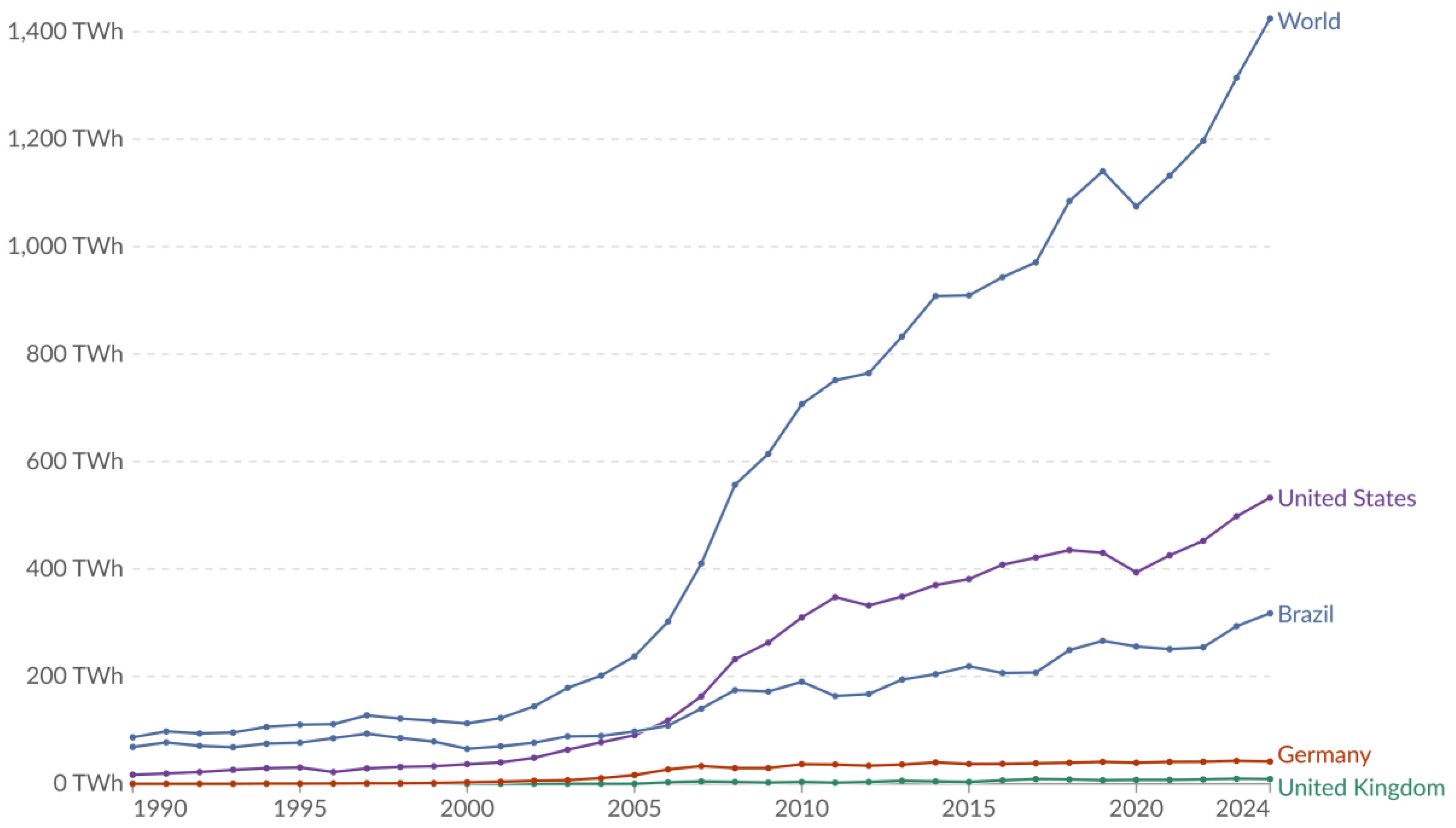 1]. This energy source has seen significant growth, with global biofuel production surpassing 1400 TWh in 2024 as shown in
