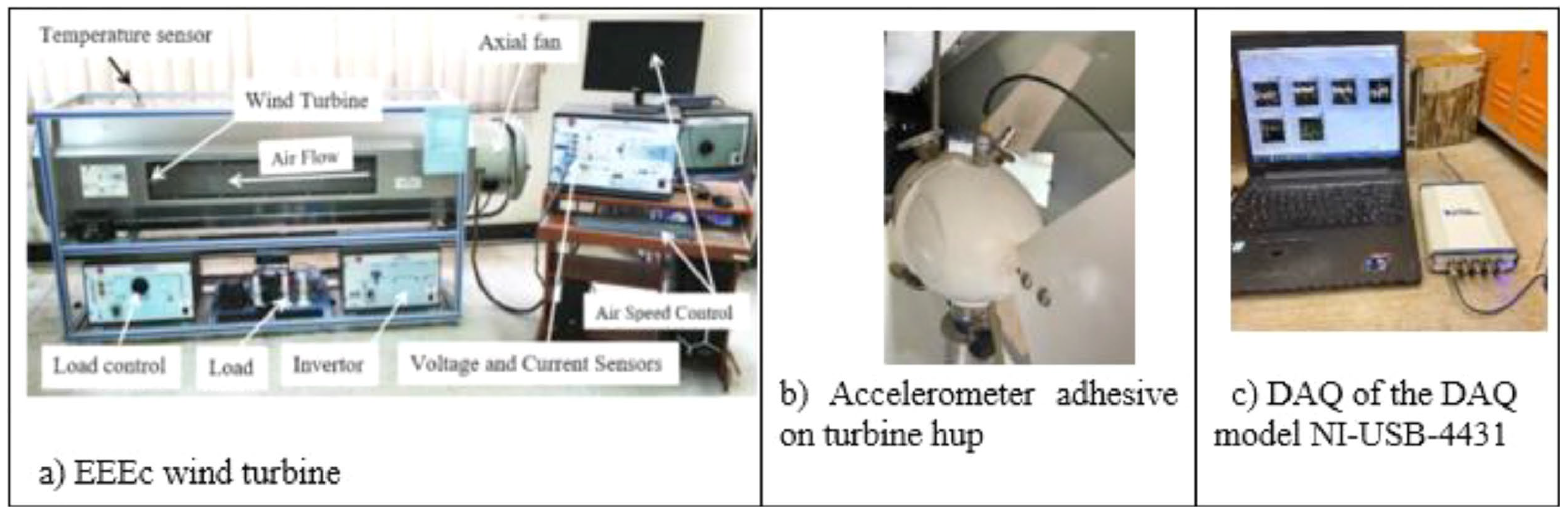 - Ogaili, A.A.F.; Abdulhady Jaber, A.; Hamzah, M.N. Wind Turbine Blades Fault Diagnosis Based on Vibration Dataset Analysis. Data Brief 2023, 49, 109414. [Google Scholar] [CrossRef]