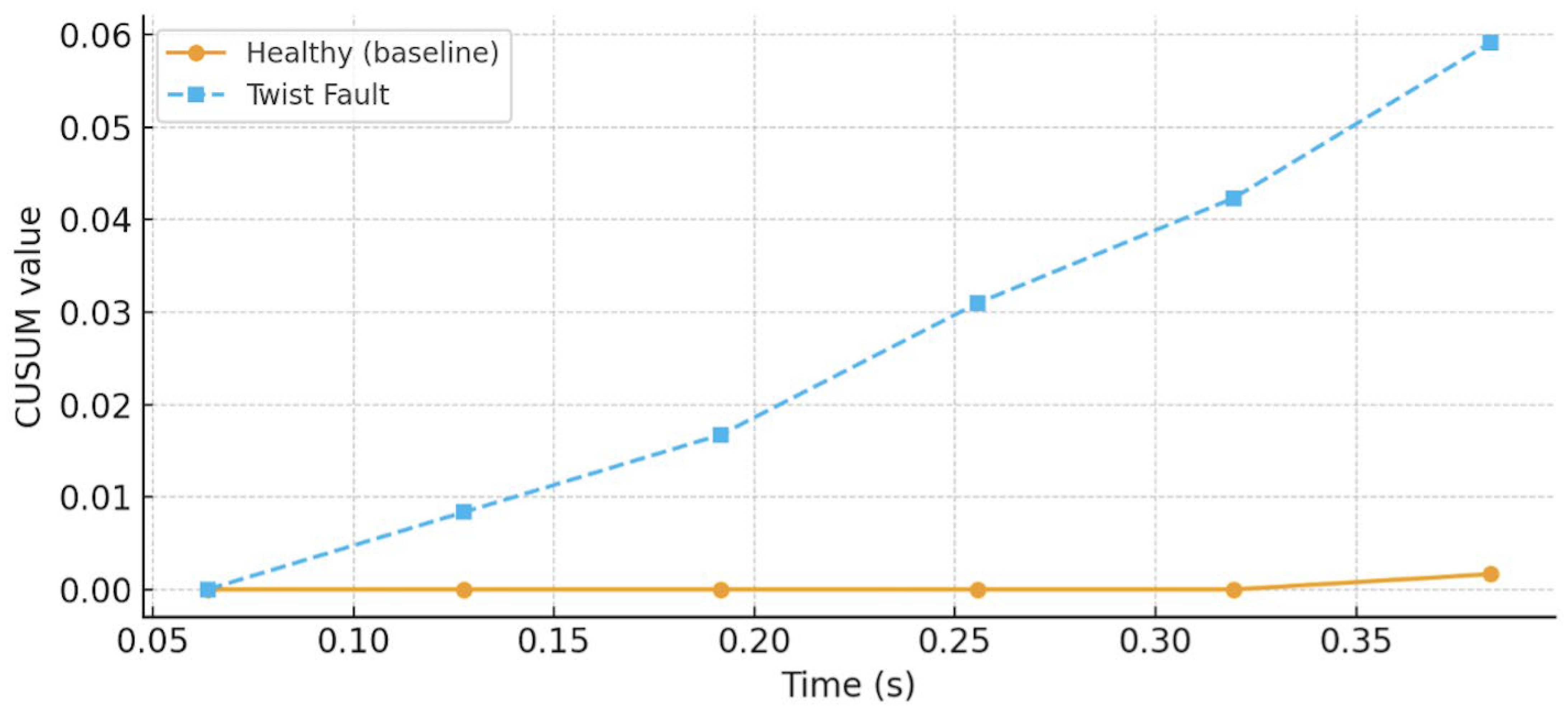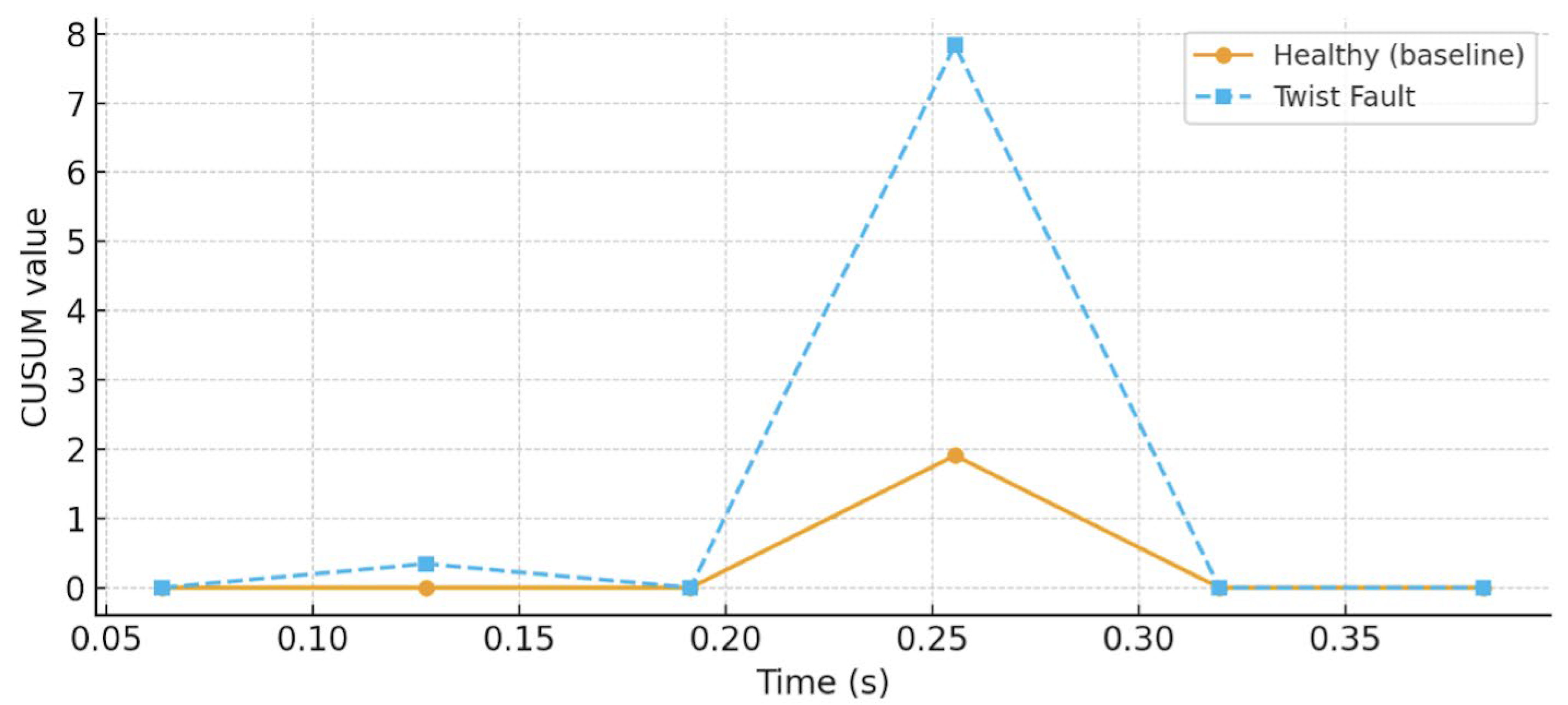 4.2. Case 2: Twist Fault Detection Using FFT and CUSUM