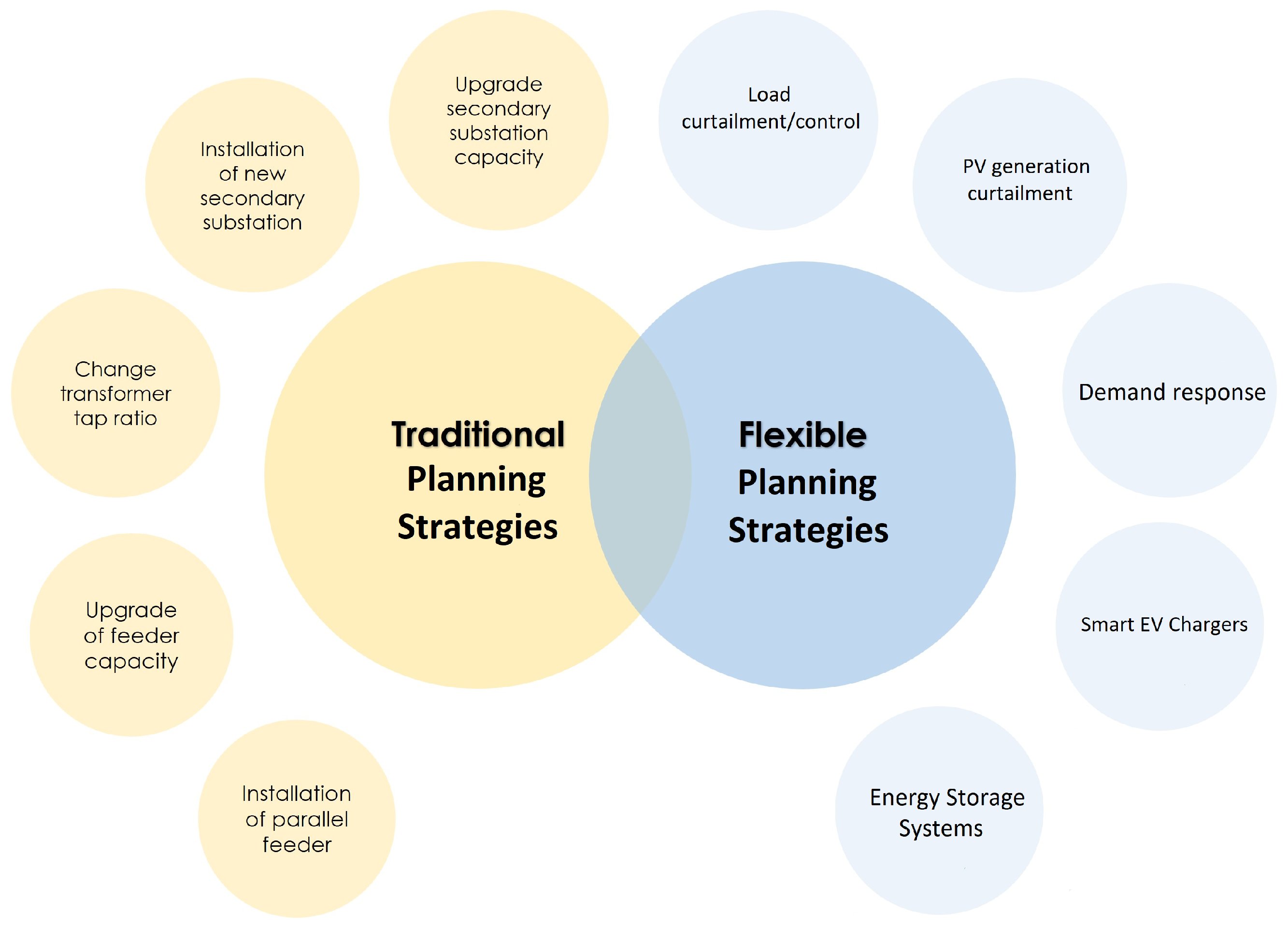 | Voltage and congestion control | Network reinforcement | DERs, storage, reactive power control |