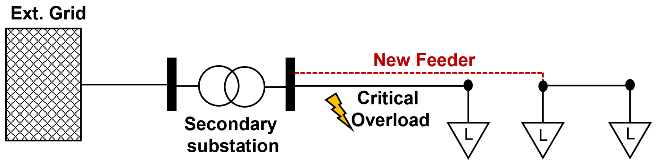 | Upgrade of existing substations for reinforcement | Upgrades ensure the capacity to handle increased demand [23,24,25]. |