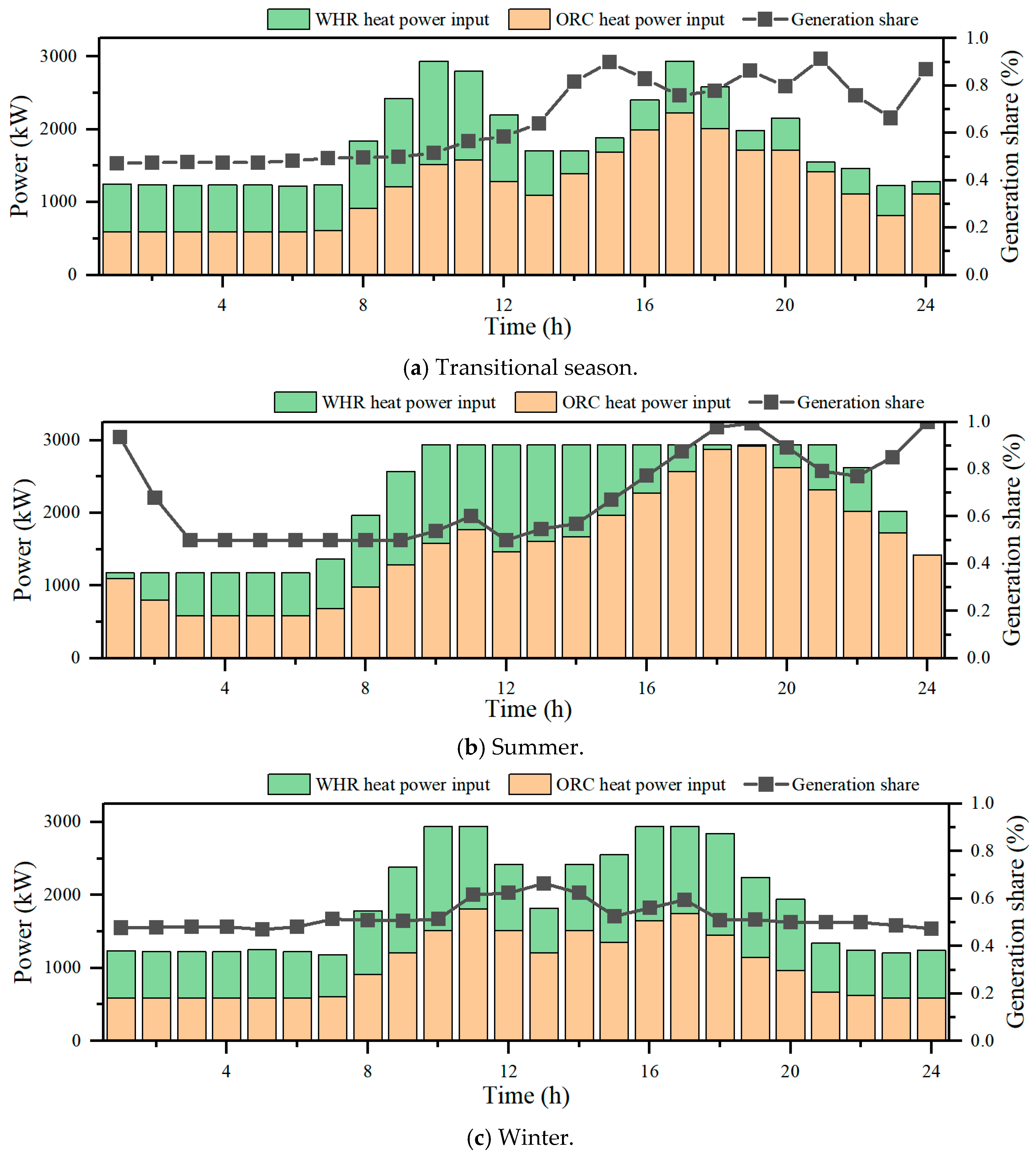 - Zhu, Y.; Xu, Y.; Chen, H.; Guo, H.; Zhang, H.; Zhou, X.; Shen, H. Optimal dispatch of a novel integrated energy system combined with multi-output organic Rankine cycle and hybrid energy storage. Appl. Energy 2023, 343, 121113. [Google Scholar] [CrossRef]