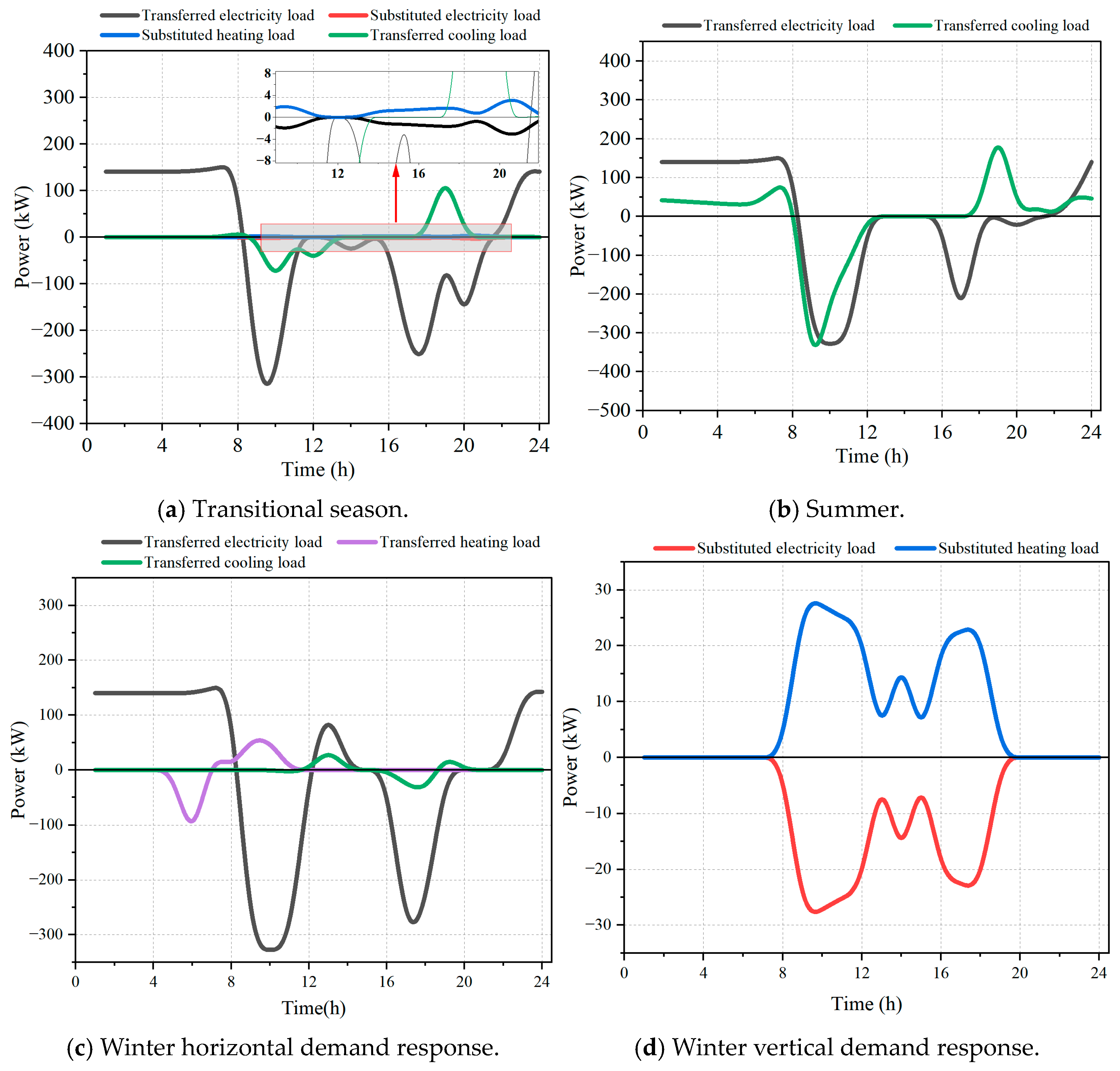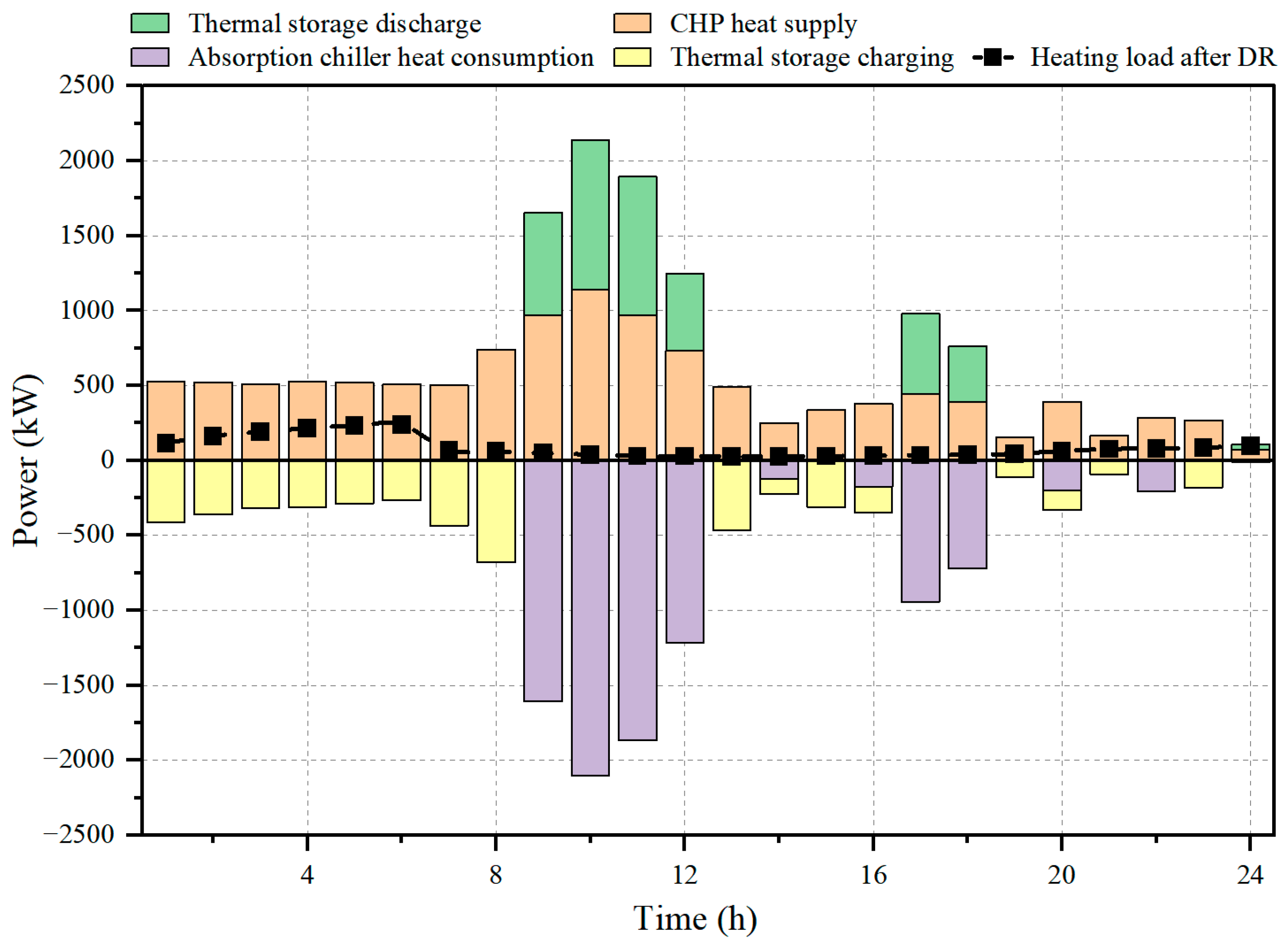 - Wang, Y.; Li, Y.; Zhang, Y.; Xu, M.; Li, D. Optimized operation of integrated energy systems accounting for synergistic electricity and heat demand response under heat load flexibility. Appl. Therm. Eng. 2024, 243, 122640. [Google Scholar] [CrossRef]