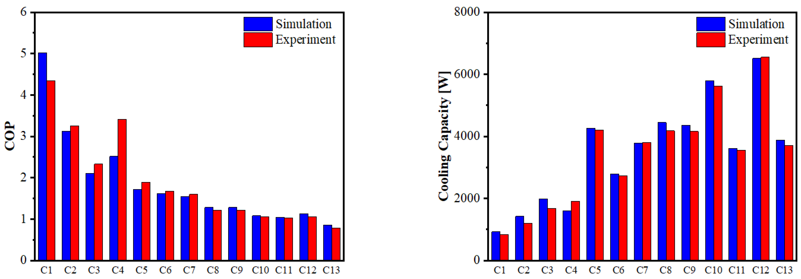 10]. This assessment was conducted under the specific cooling scenario conditions and heating scenario conditions defined in that study. In this study, the validation was performed using heating/cooling capacity and the Coefficient of Performance (