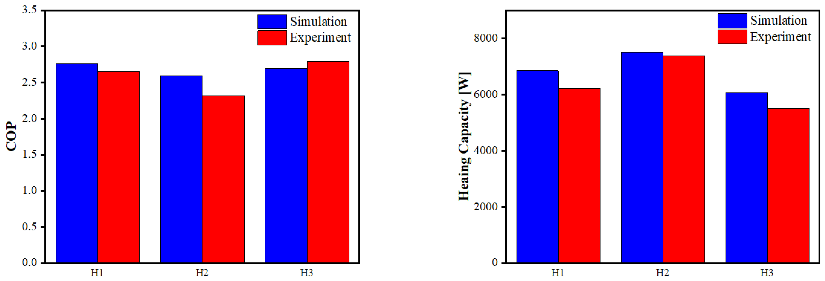 and 7.52% for heating capacity, respectively, demonstrating a high degree of agreement with the experimental data.