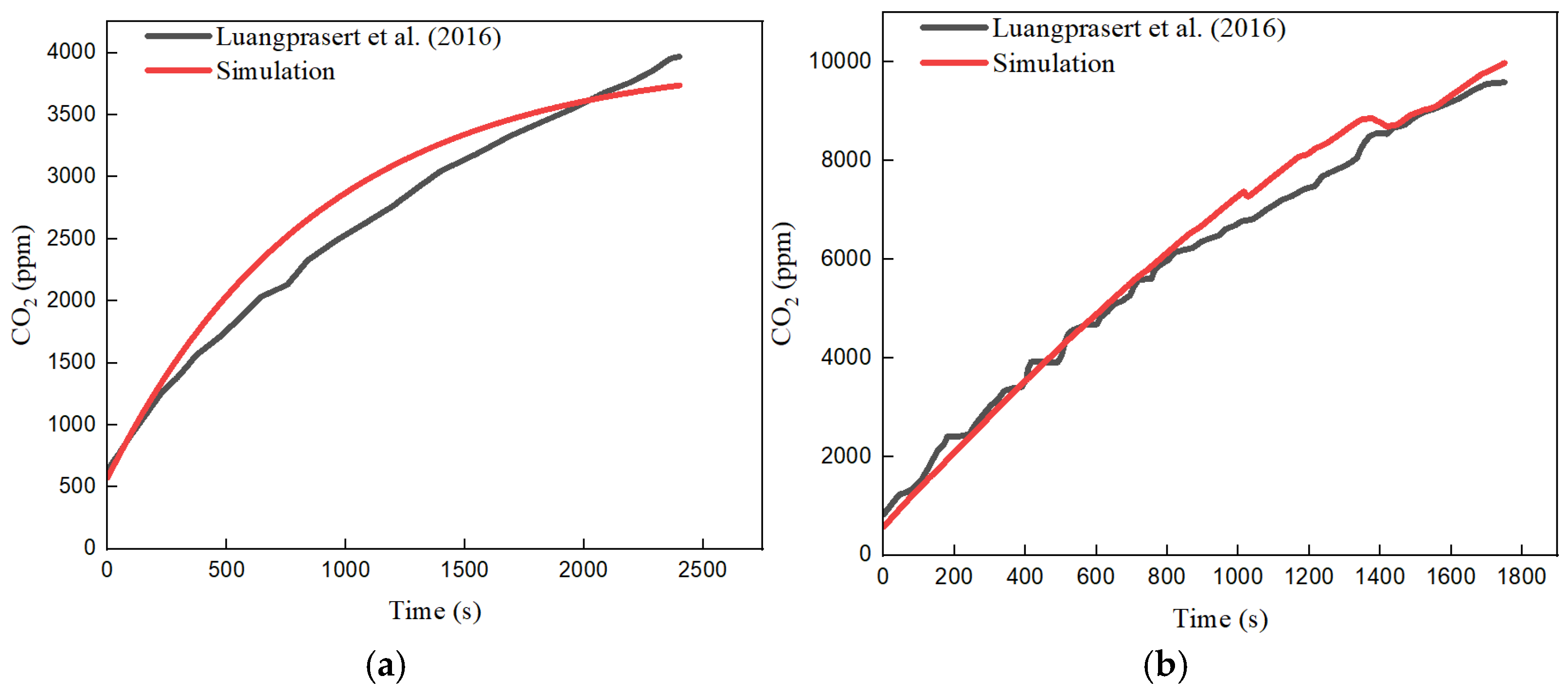 - Matton, T.J.P. Simulation and Analysis of Air Recirculation Control Strategies to Control Carbon Dioxide Build-up Inside a Vehicle Cabin. Master’s thesis, University of Windsor, Windsor, ON, Canada, 2015; p. 5269. Available online: https://scholar.uwindsor.ca/etd/5269 (accessed on 14 November 2025).