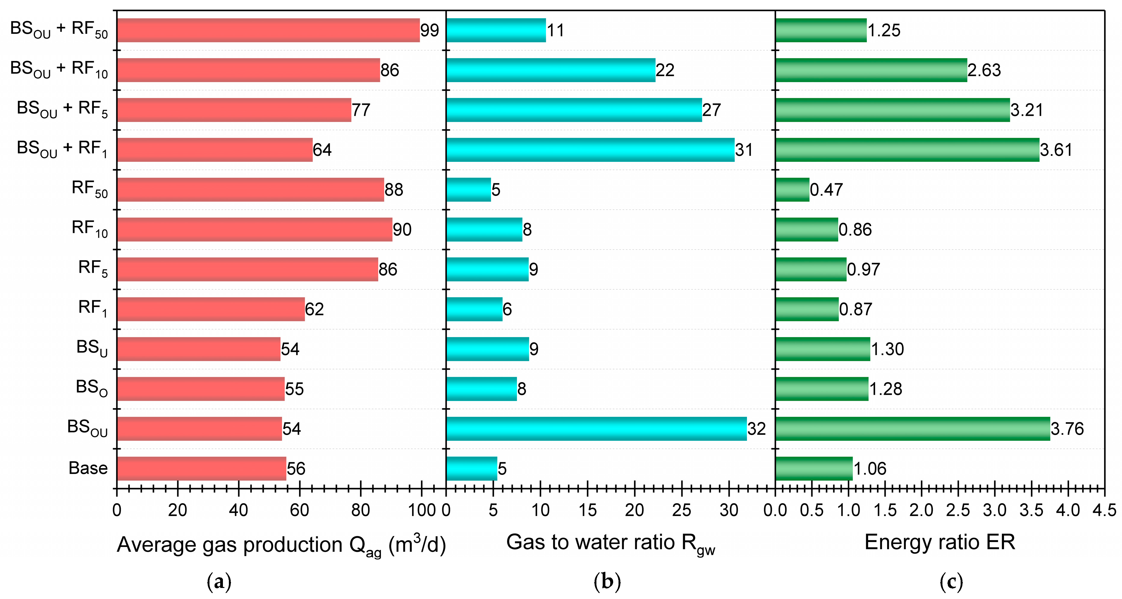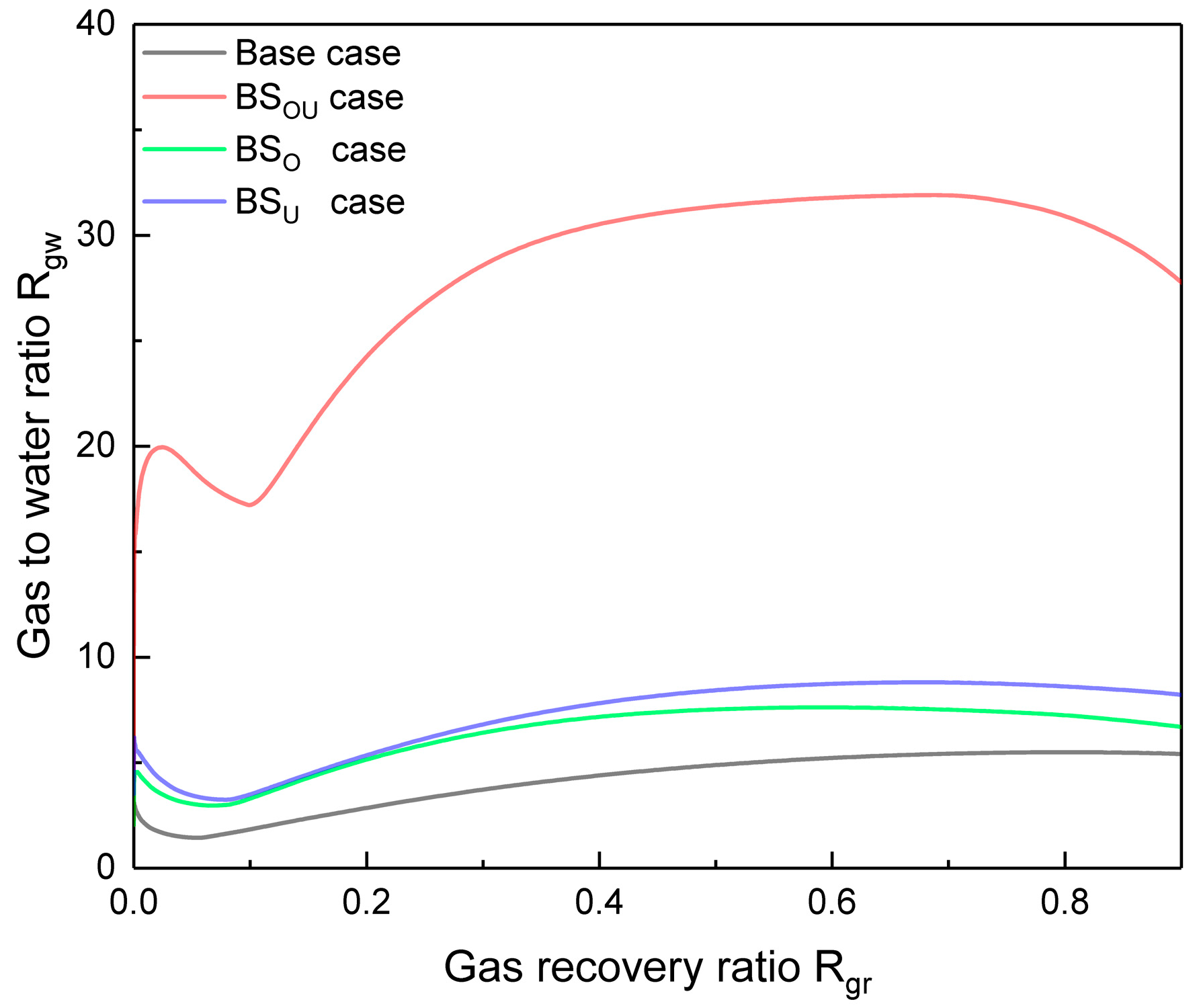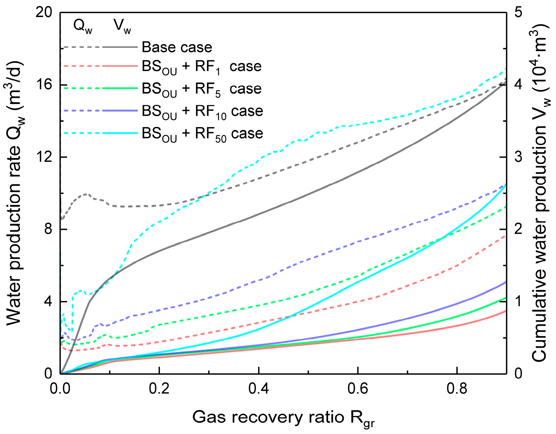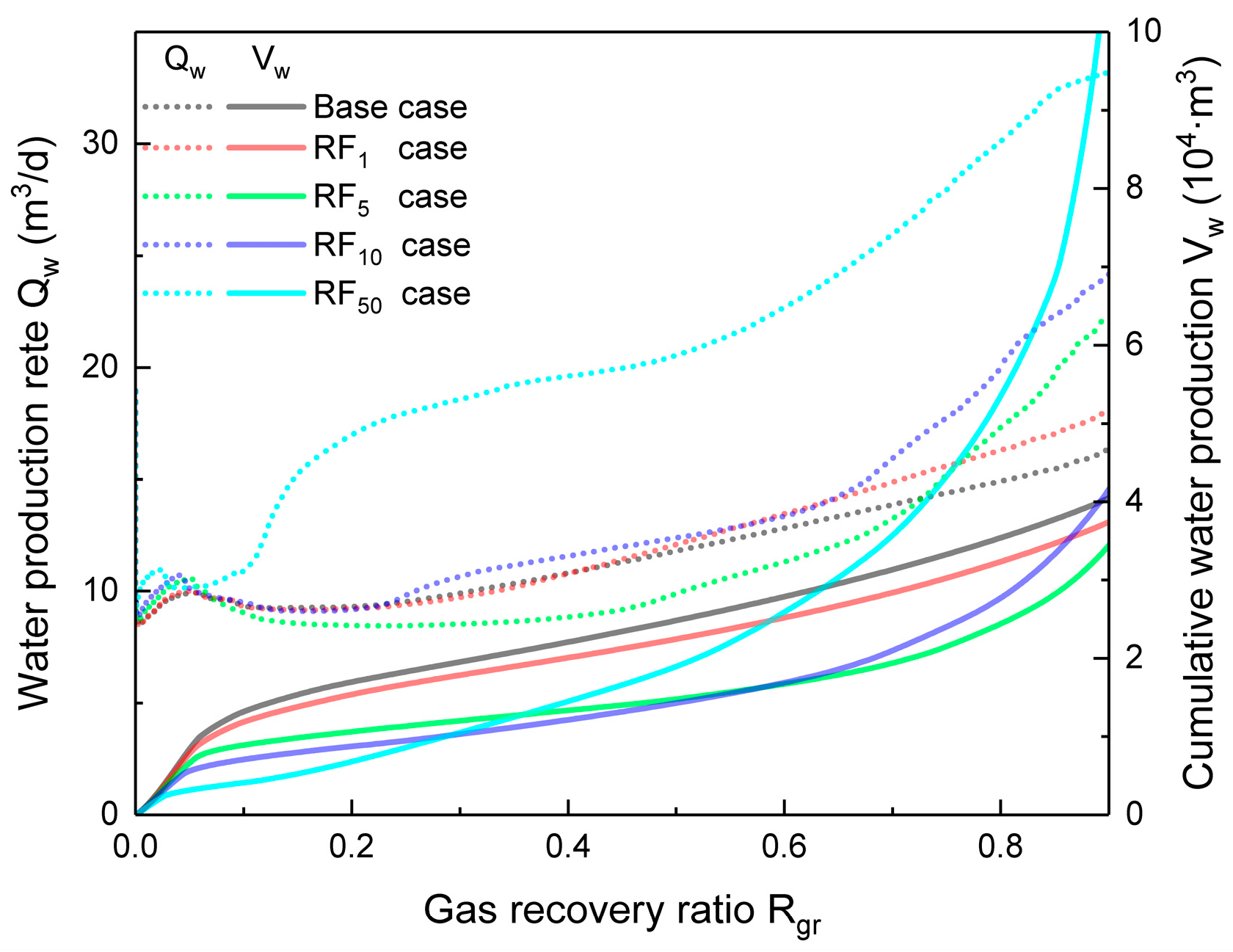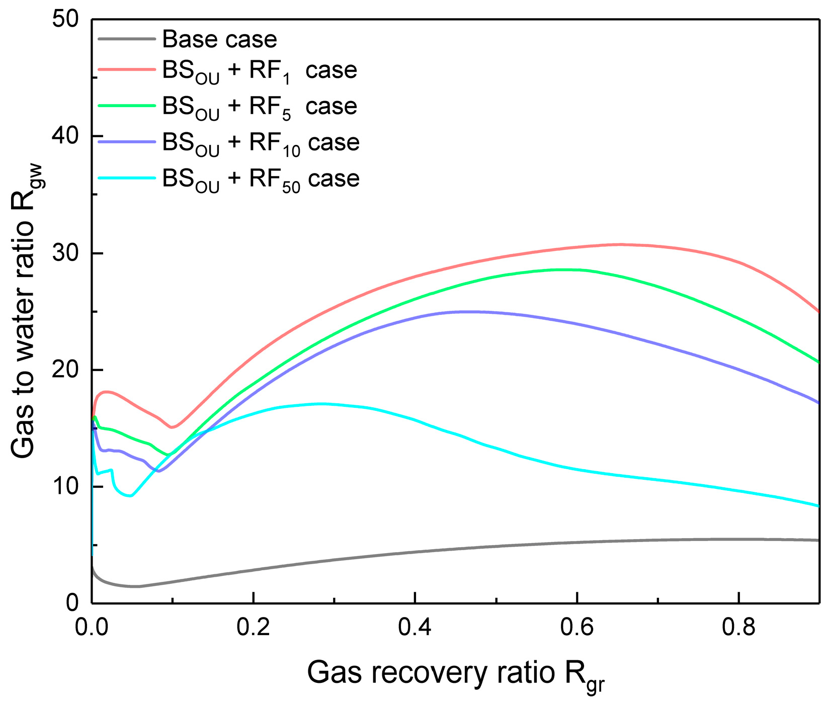 - There is no methane leakage under the synergistic effect of RF and BS. Furthermore, Qh and Qg improve significantly as Cf increases, whereas Rgw and ER show the opposite trend. Therefore, rational regulation of Cf value is essential to obtain satisfactory multi-well injection-production behavior, with 1–10 D·cm recommended.