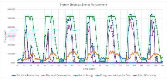 Electricity demand data for the prototype, including the ripening process, were collected from two production weeks (from 3 February to 9 February 2025 and from 26 May to 1 June 2025), using the monitoring system installed on the prototype [48]. The battery has a maximum usable storage capacity of 5.2 kWh.