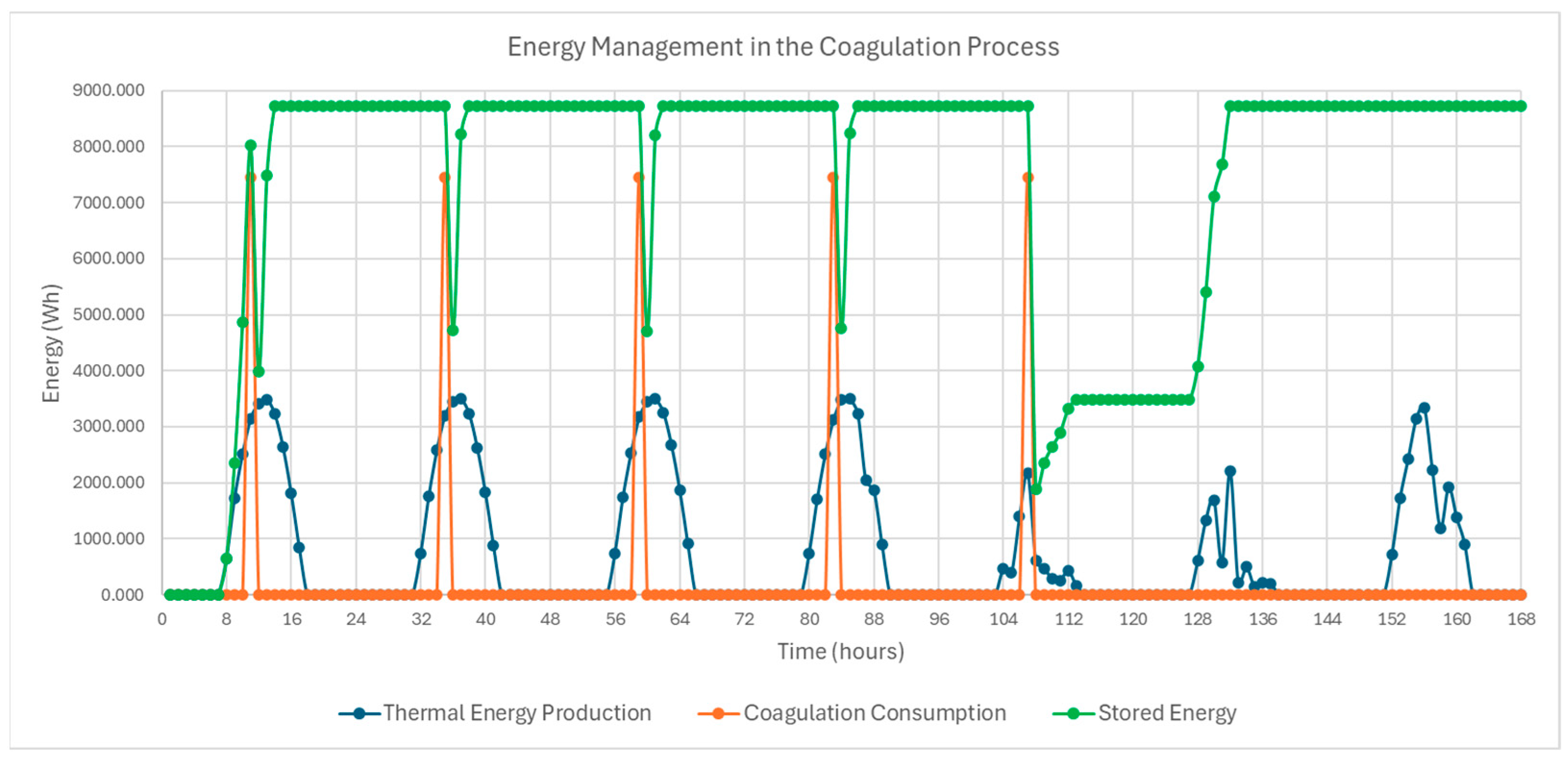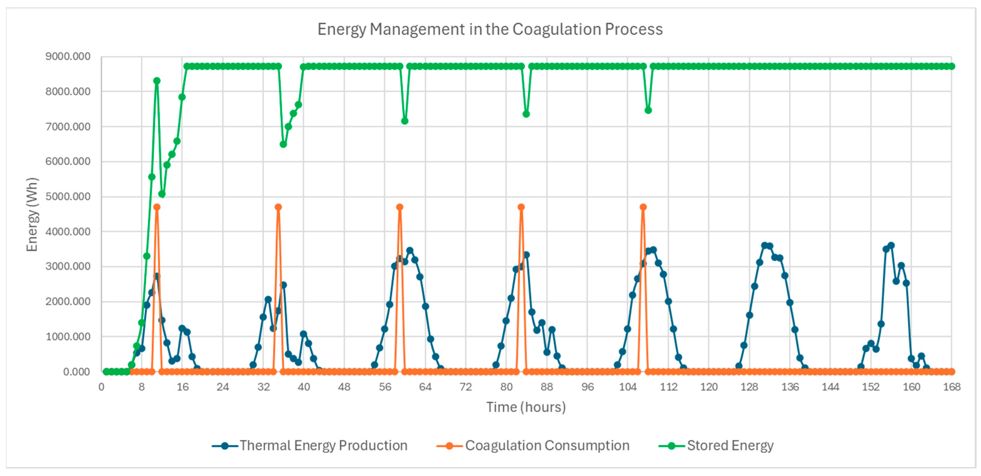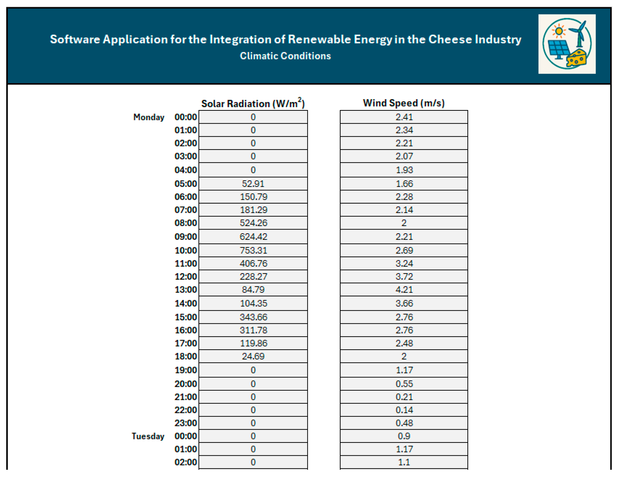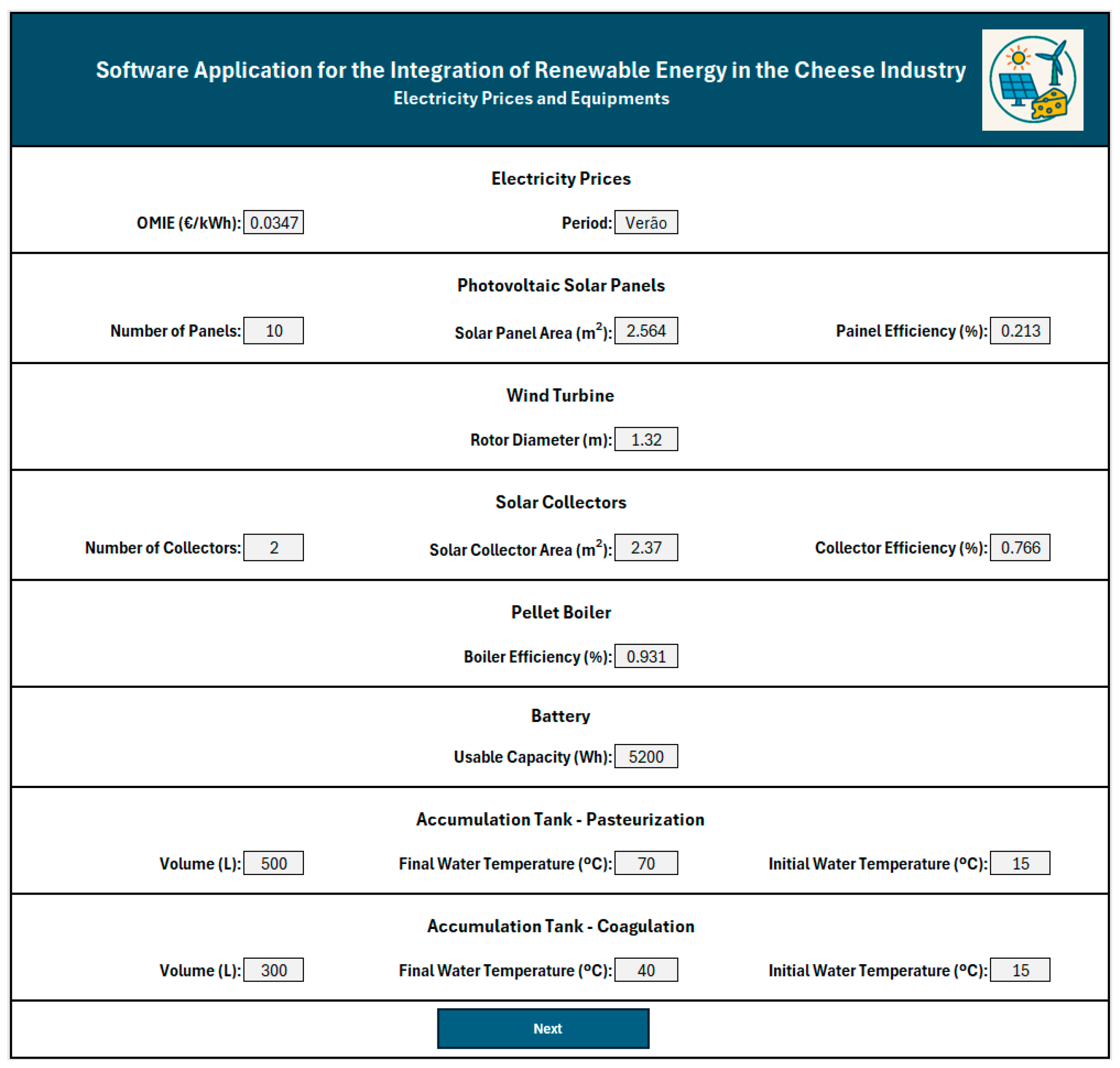 However, there are some limitations associated with the developed simulation tool. The use of Excel for its implementation presents challenges in terms of presenting calculations clearly and limits its applicability to more complex systems. Furthermore, the tool was specifically designed for a particular type of renewable energy integration to allow comparison with the prototype installed in Beja. Consequently, its use is currently restricted to similar renewable-powered cheesemaking units, excluding other forms of renewable energy generation.