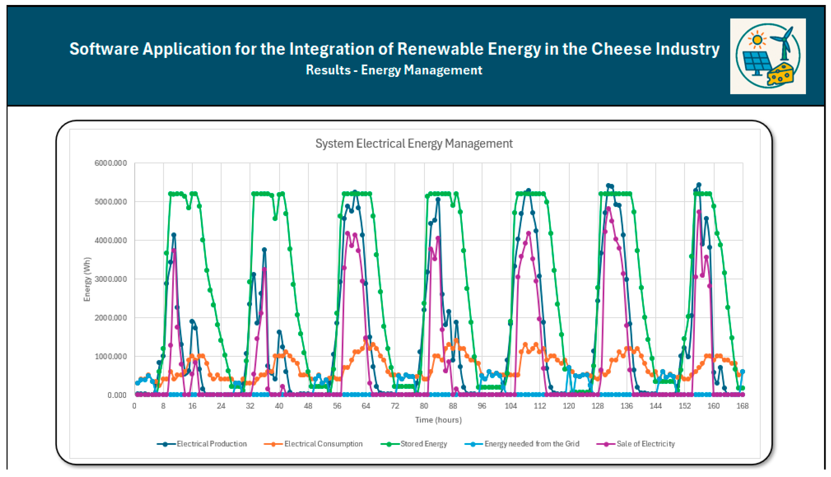 The simulation tool was designed based on a prototype dairy unit equipped with photovoltaic panels, a wind turbine, solar collectors, and a pellet boiler. Phase Change Materials (PCMs) were also incorporated into the ripening chamber to stabilize temperature conditions. Two operating scenarios were evaluated for the prototype installed at the Polytechnic Institute of Beja, considering different periods of the year.