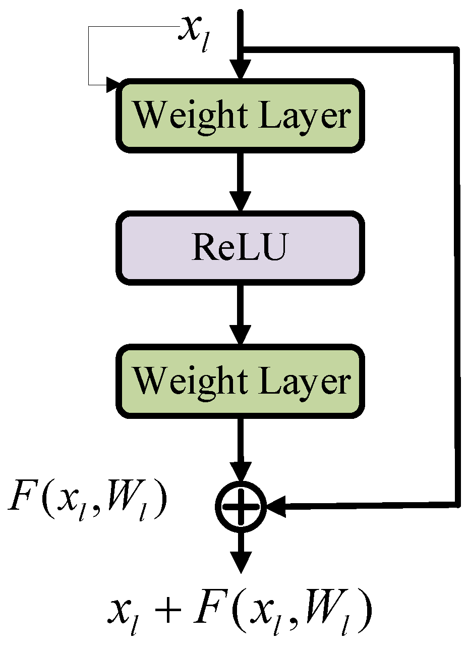 where x 0 is the input to the residual neural network; x L is the output. The structure of the residual network is shown in Figure 2.