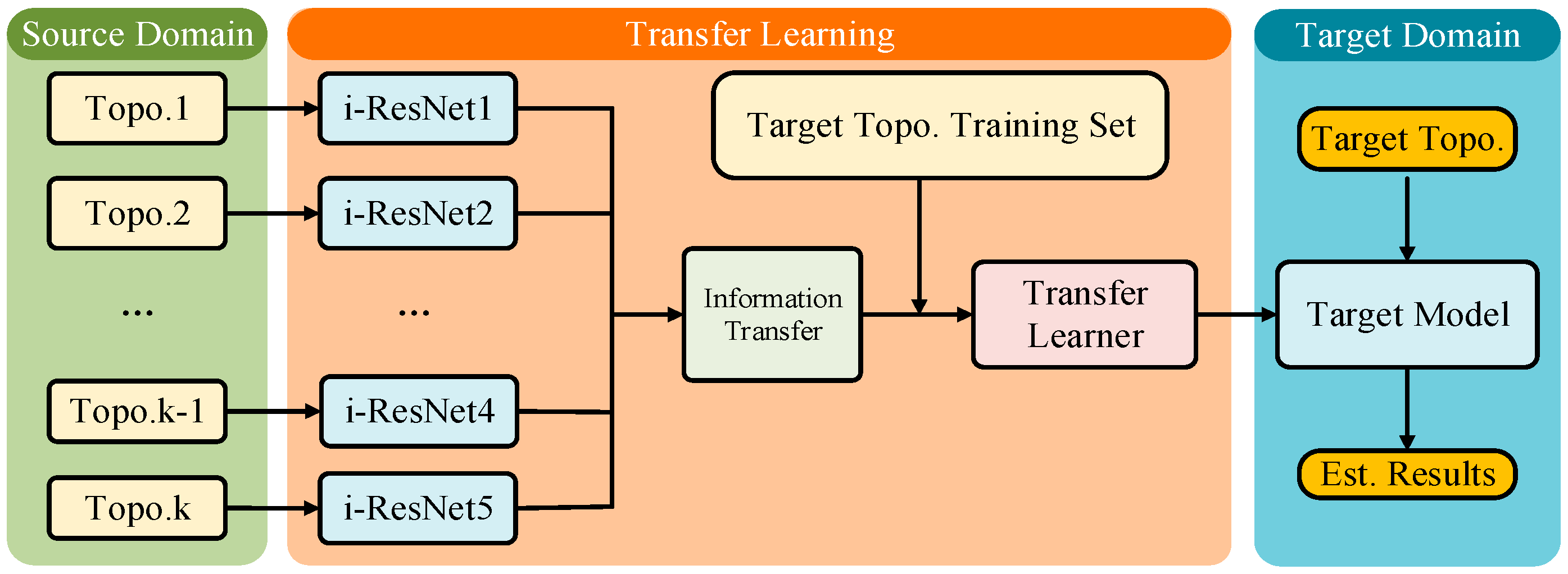To address the state estimation problem for new topologies, this section introduces a transfer learning-based method. It creates links between source and target topologies, using inductive transfer to harness extensive historical data from source topologies to enhance performance on the target topology.