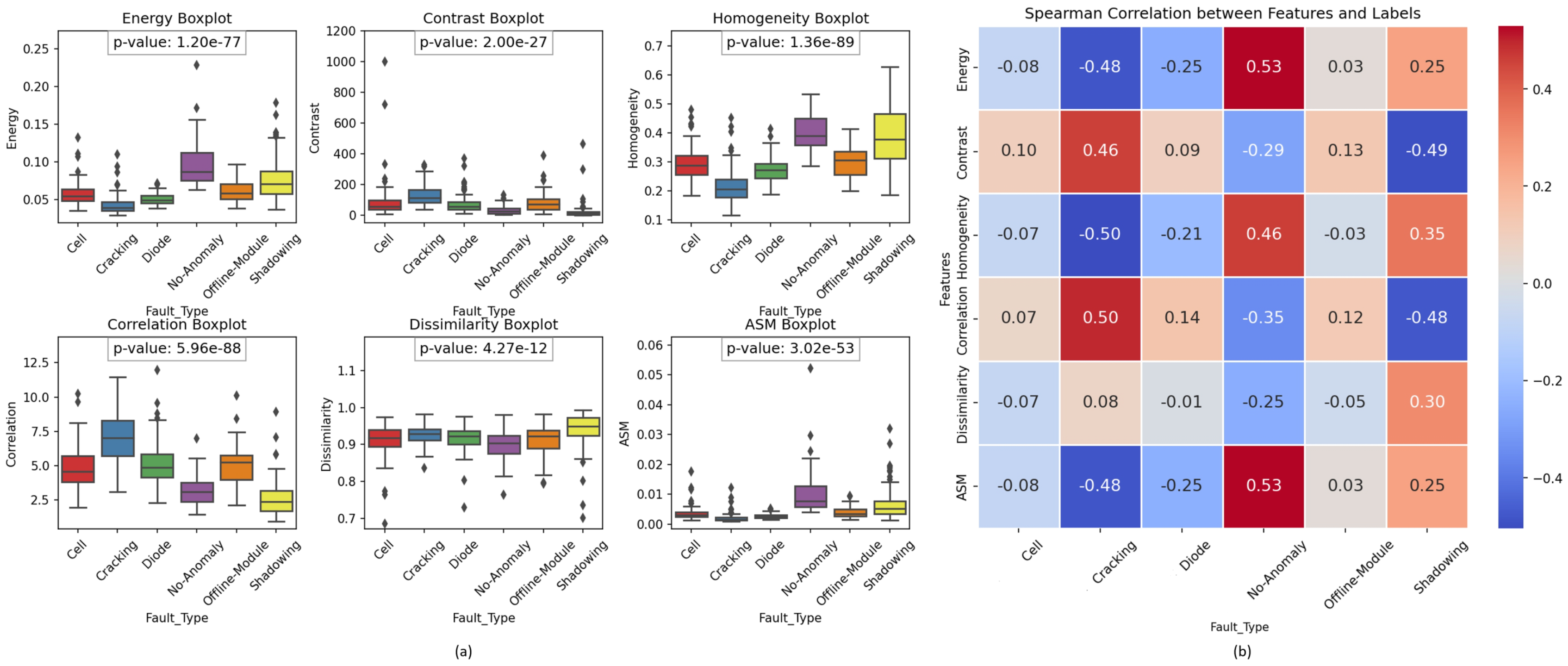 In this study, infrared images of photovoltaic (PV) modules were used as the experimental dataset to extract texture features, aiming to investigate their correlation with different fault types through statistical analysis. To ensure the rigor and reliability of our experimental analysis, we engaged in in-depth discussions with domain experts.