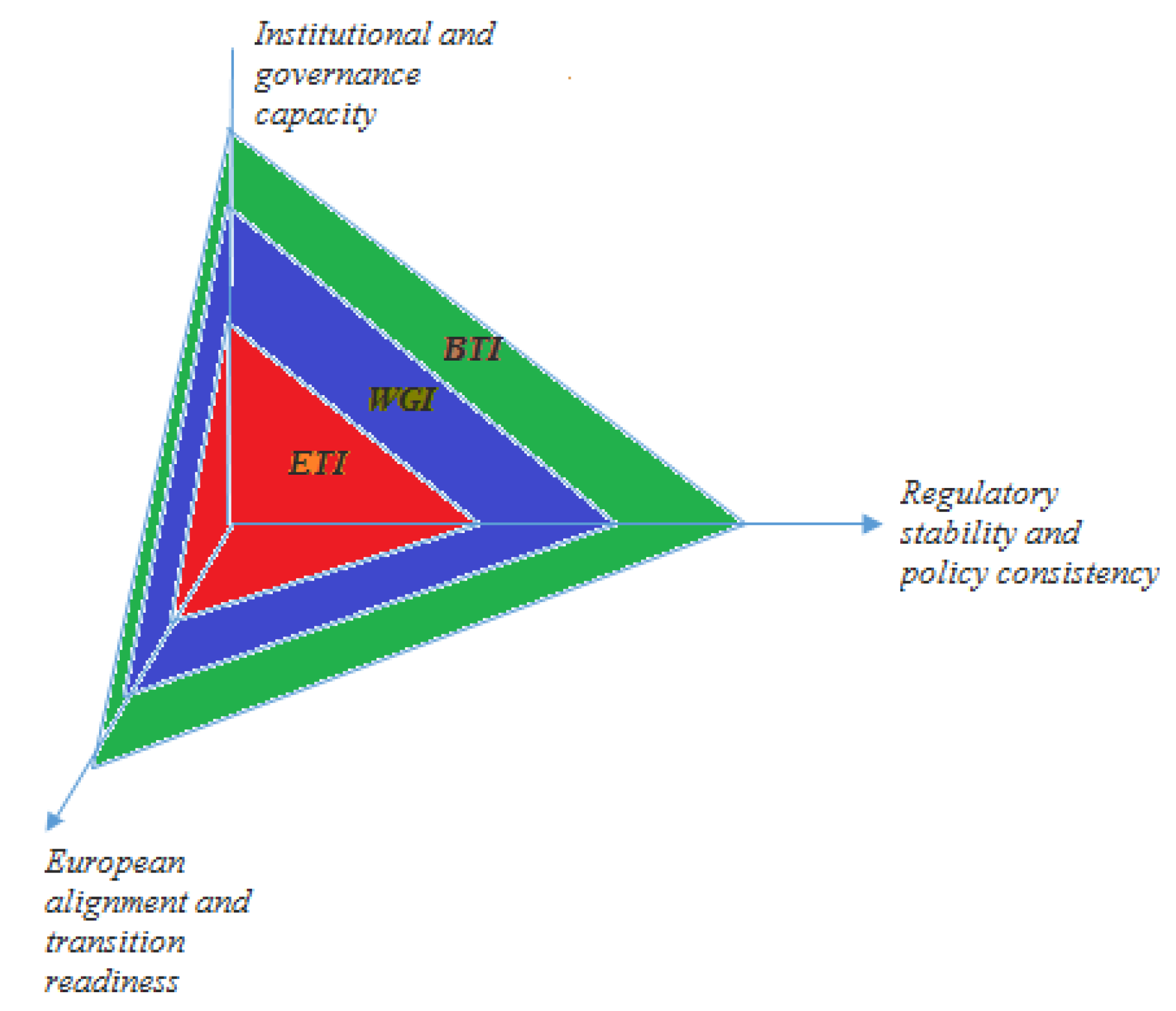 These dimensions are operationalized through data from the ETI, WGI, and the BTI, which together enable a multidimensional understanding of governance as both a catalyst and a constraint in the renewable energy sector (