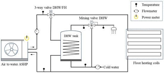 Configuration diagram of the integrated SH and DHW ASHP system.