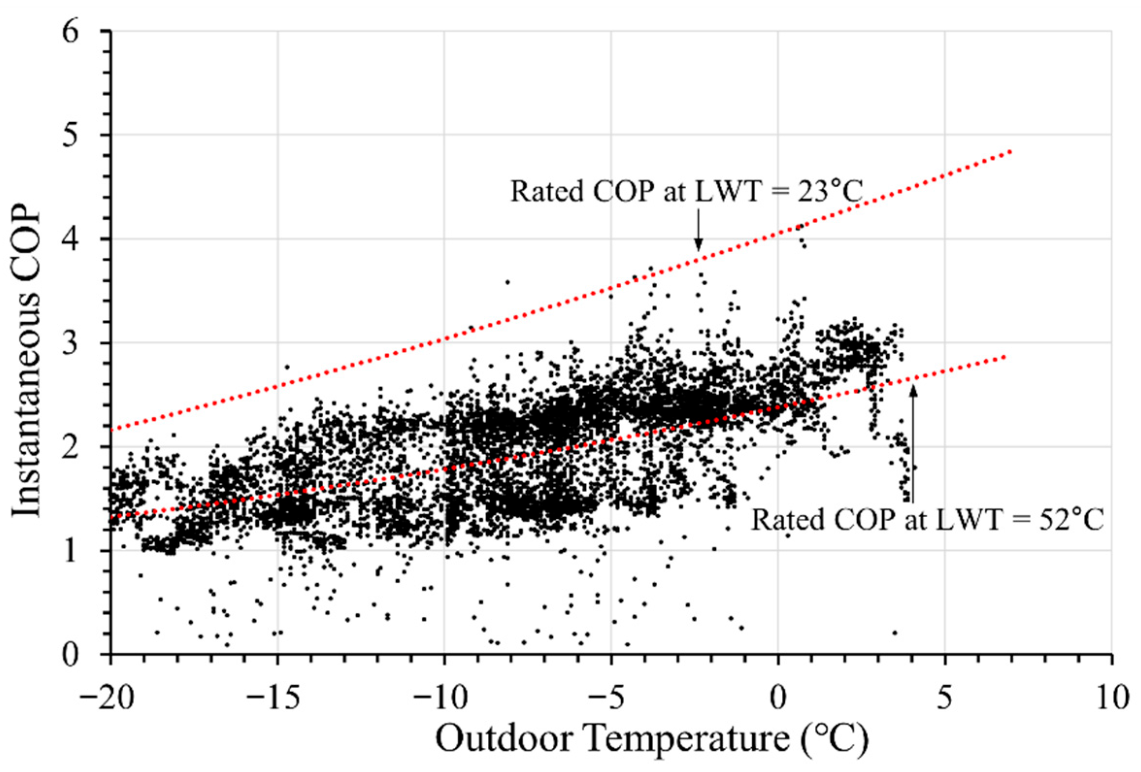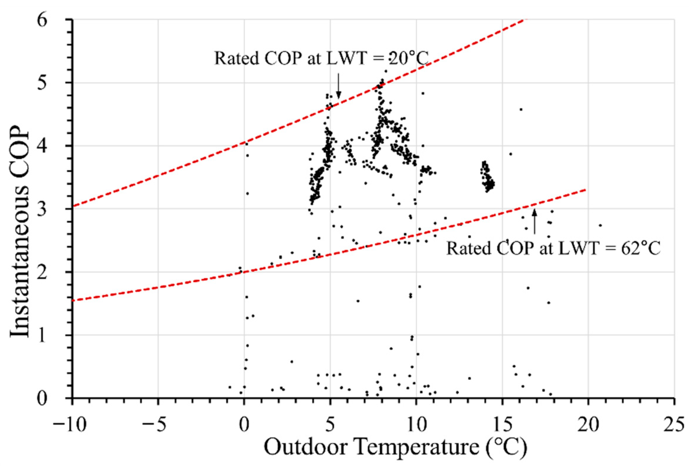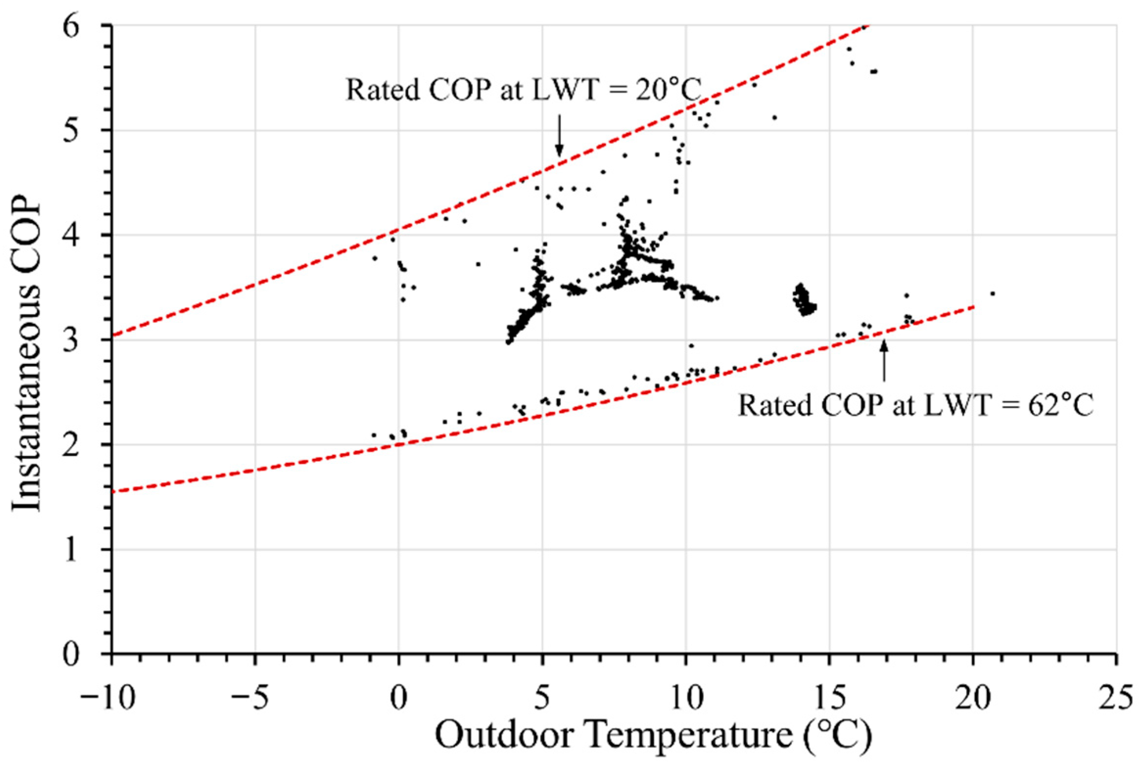 - O’Hegarty, R.; Kinnane, O.; Lennon, D.; Colclough, S. Air-to-water heat pumps: Review and analysis of the performance gap between in-use and product rated performance. Renew. Sustain. Energy Rev. 2022, 155, 111887. [Google Scholar] [CrossRef]
