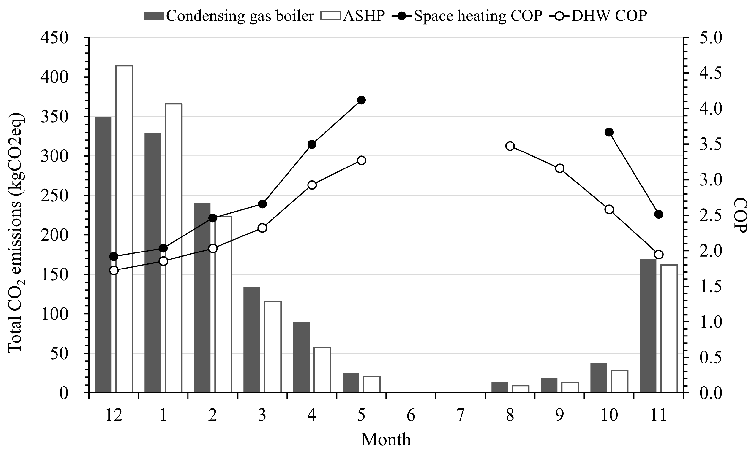 - To assess the seasonal performance of the ASHP in both SH and DHW modes, using high-resolution data collected over one year.