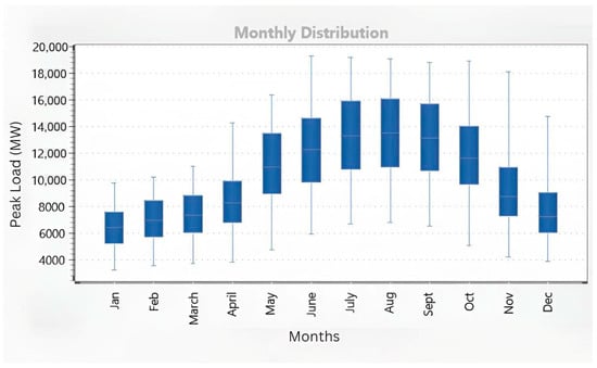 Monthly distribution of peak loads (MW) in Dubai using PLEXOS®.