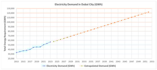 Total energy requirement (GWh) in Dubai (2013–2052) [25].