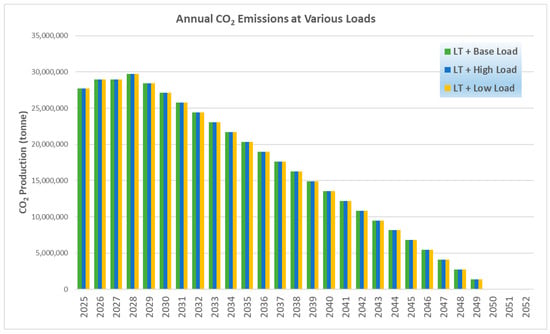 In the CO2 annual emission scenario, the targets mentioned above were extended to 2050 to achieve zero-emission power generation. This was performed by gradually decreasing emissions with equal steps starting from 27.14 million tons of CO2 in 2030. Under this condition, a PLEXOS® constraint was applied to prevent yearly emissions from exceeding the specified thresholds.